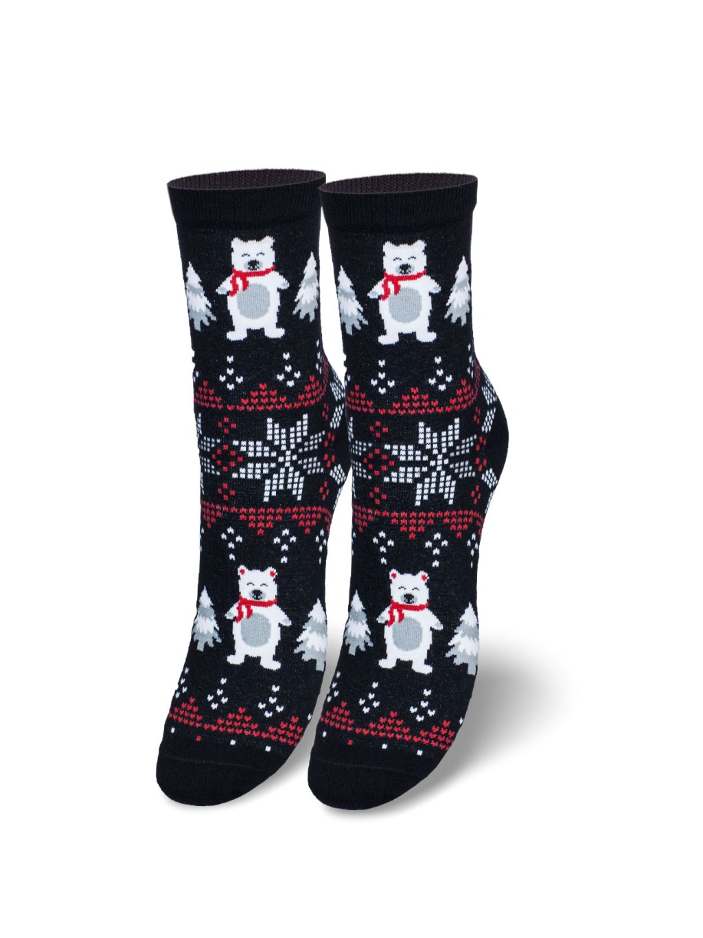 Nogavice CHRISTMAS RAINDEER HEADS & SNOWFLAKES PATTERN – RDEČA